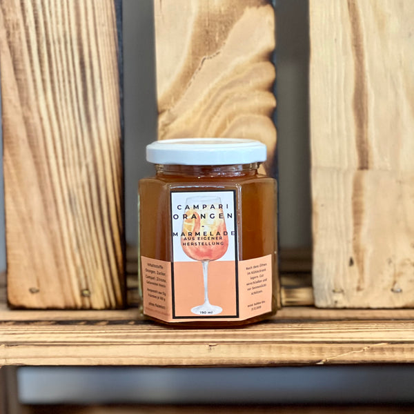 Unsere Campari-Orangen-Marmelade vereint den bittersüßen Geschmack von Campari mit der fruchtigen Frische sonnengereifter Orangen. Diese handgemachte Marmelade bietet ein aufregendes Geschmackserlebnis und eignet sich hervorragend als köstlicher Aufstrich für frisches Brot, Croissants oder als besondere Zutat für Desserts und Käseplatten.