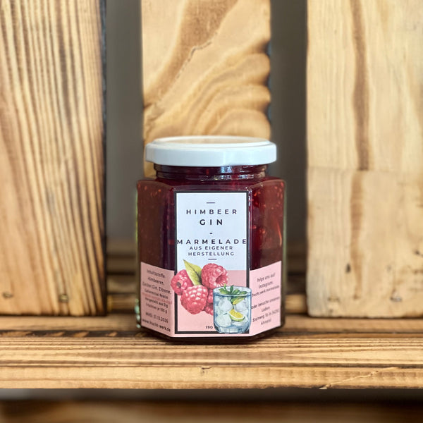 Unsere Himbeer-Gin-Marmelade kombiniert den fruchtigen Geschmack saftiger Himbeeren mit der feinen Note von Gin. Diese handgemachte Marmelade bietet ein aufregendes Geschmackserlebnis und eignet sich hervorragend als köstlicher Aufstrich für frisches Brot, Croissants oder als besondere Zutat für Desserts und Käseplatten.
