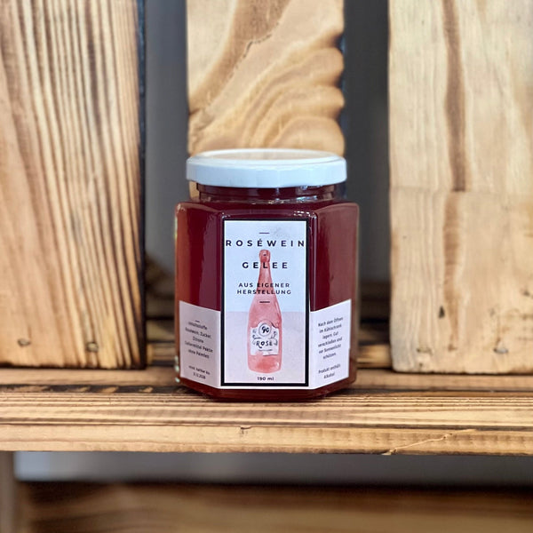 Unser Roséwein-Gelee vereint die zarten, fruchtigen Noten eines erlesenen Roséweins mit der feinen Süße eines eleganten Gelees. In liebevoller Handarbeit hergestellt, eignet es sich perfekt als Begleitung zu Käseplatten, auf frischem Brot oder als besondere Zutat für Desserts.