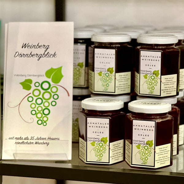 - Aus dem Weinberg Dörnbergblick: Dieses Gelee wird aus handverlesenen Trauben des Weinbergs Dörnbergblick in Ahnatal hergestellt.