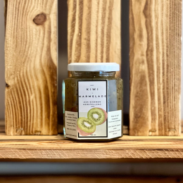 Unsere Kiwi-Marmelade bringt den exotischen, leicht herben Geschmack reifer Kiwis in einen erfrischenden Aufstrich. Diese handgemachte Marmelade bietet ein einzigartiges, tropisches Geschmackserlebnis und eignet sich hervorragend als fruchtiger Aufstrich für Brot, Croissants oder als besondere Zutat für Desserts und Gebäck.
