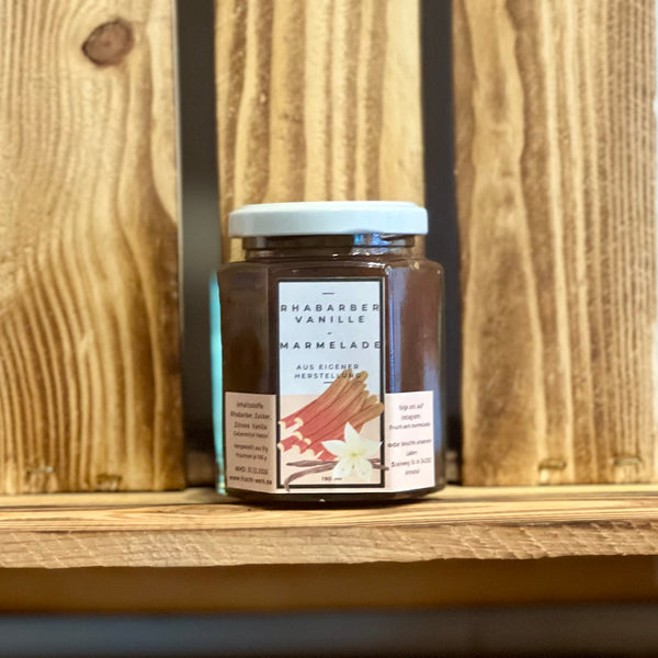 Unsere Rhabarber-Vanille-Marmelade vereint den erfrischenden, leicht säuerlichen Geschmack von frischem Rhabarber mit der süßen, sanften Note von Vanille. Diese handgemachte Marmelade bietet ein einzigartiges Geschmackserlebnis und eignet sich hervorragend als köstlicher Aufstrich für frisches Brot, Croissants oder als besondere Zutat für Desserts und Gebäck.